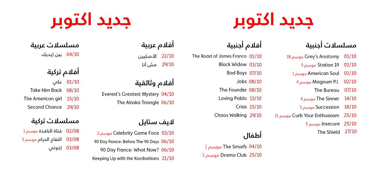 قائمة مسلسلات وأفلام "OSN" في أكتوبر 2021